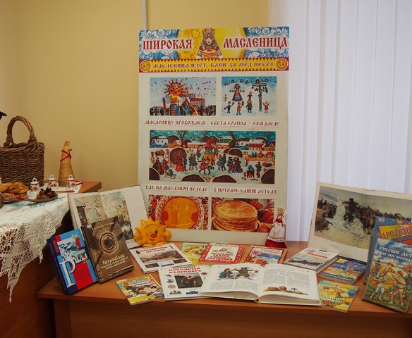 Масленица – весёлый народный праздник, посвященный проводам зимы и встрече весны. На выставке ребята познакомились с её историей и обрядами: как праздновали Масленицу, какие блины можно испечь, как украсить праздничный стол и др. На страницах книг, представленных на экспозиции, можно найти пословицы и поговорки, народные приметы и игры, а также познакомиться с картинами Б. Кустодиева и В. Сурикова, изображающими проводы зимы.