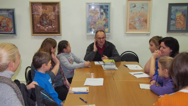 В обед к нам в гости пришли постоянные участники «Семейной мастерской сказок Андрея Зеленина» – начинающие авторы, которые продолжают осваивать литературное мастерство и перенимать опыт талантливого детского писателя Андрея Зеленина. Чуть позже к ним присоединились и все желающие поближе познакомиться с работой, кипящей в мастерской сказок.