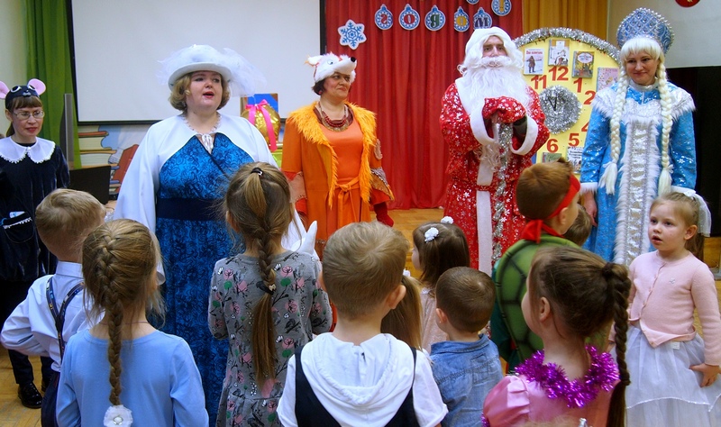 Вместе с ребятами мы спасали маленькую Мышку из лап коварной рыжей Лисицы, искали потерявшиеся огонечки с новогодней красавицы елки, отгадывали загадки и играли в веселые игры с дедушкой Морозом.