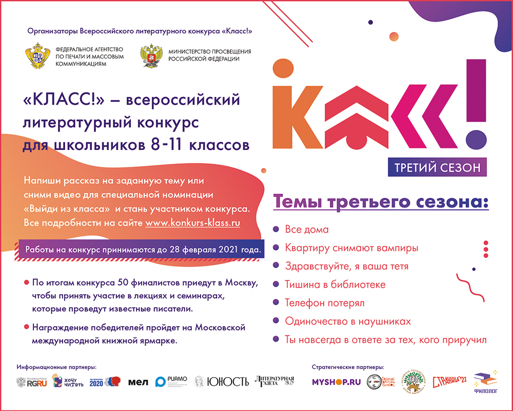 Стартовал 3 сезон Всероссийского литературного конкурса «Класс»!