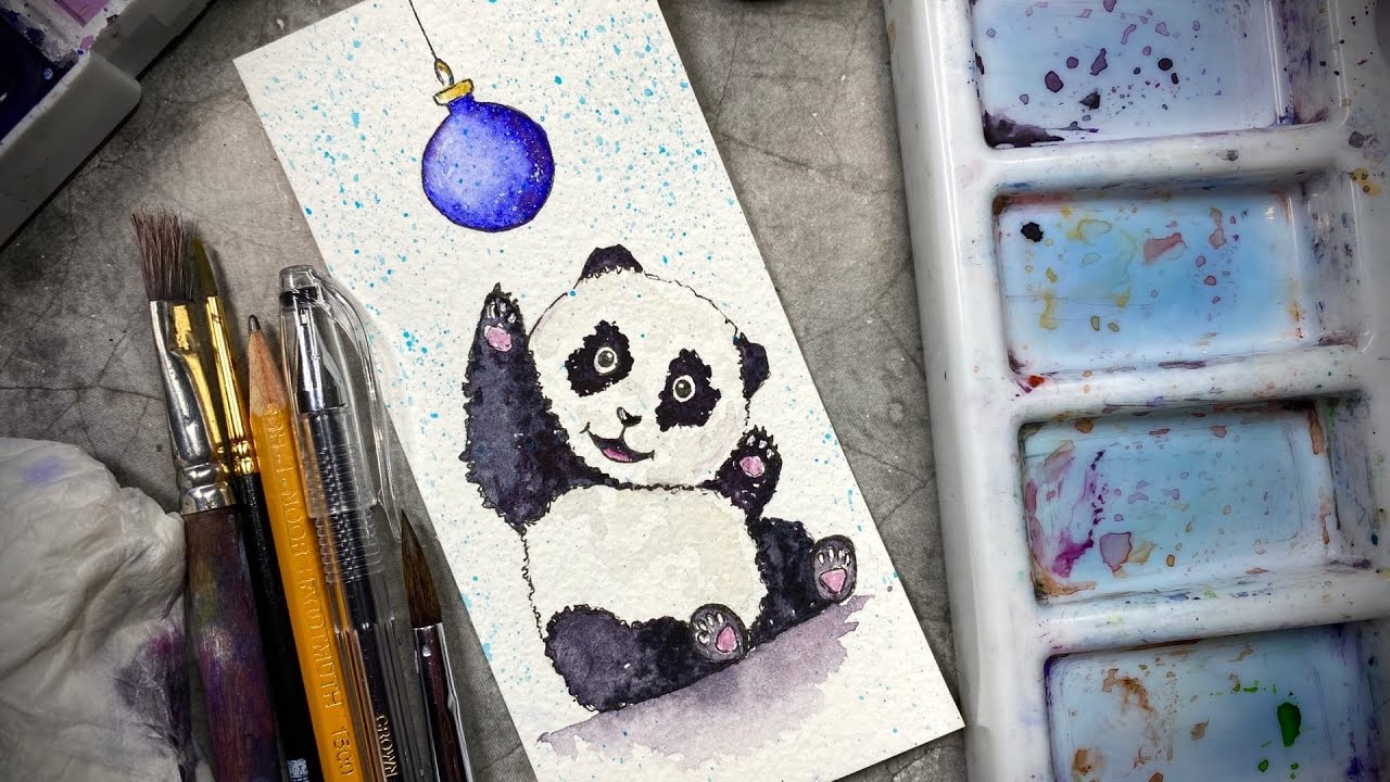 Зарядитесь позитивом и превратите обычный белый лист бумаги в яркую акварельную картину с неунывающей пандой в главной роли!